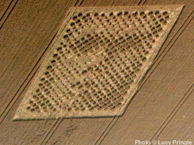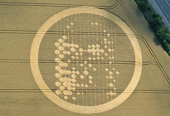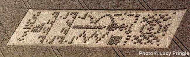 14 августа 2001 года возле радиоастрономической обсерватории Чилболтон, в графстве Гемпшир (Англия) были зафиксированы два значимых рисунка (рис. 5, рис. 6). У исследователей кругов не возникло сомнений в том, что эти рисунки являются присланным из космоса ответом разумных сил на послание землян.