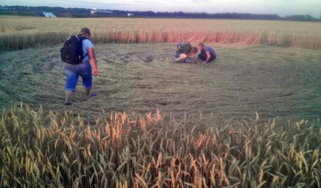 По мнению исследователей, появление пиктограмм происходит следующим образом: примерно в 150–200 метрах от земли зависает некий неопознанный летающий объект (НЛО) и из него, «что–то бьёт в землю», плотно прижимая к земле и скручивая по часовой стрелке колосья пшеницы.