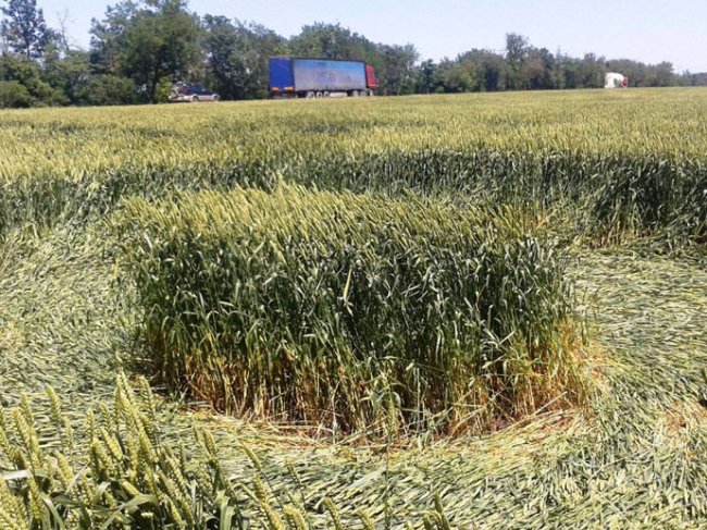 Инопланетный разум или хитрость местных кулибиных заставили колосья лечь в одном направлении четко по кругу – доподлинно неизвестно.