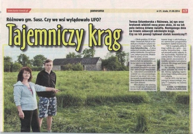 «Правдоподобно, в ночь с 17 на 18 мая этого года на одном из полей в Рожново около города Суш (Варминско-Мазурское воеводство) появилась довольно простая по своей форме формация кругов в траве. Но в том же время, непростыми были обстоятельства, сопутствовавшие ее возникновению.