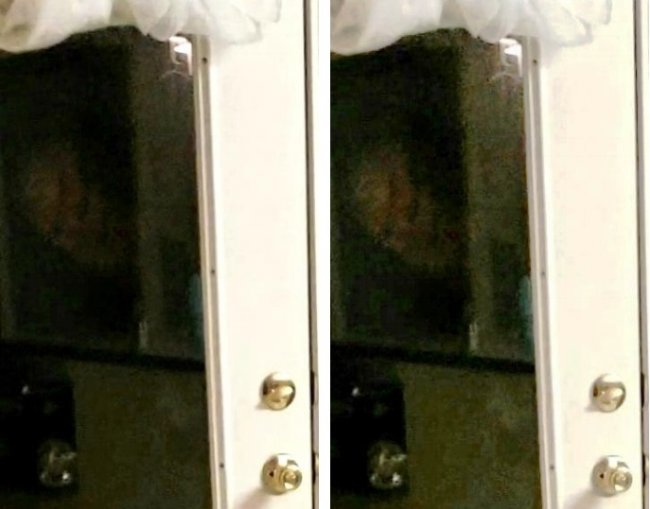 А 15 августа произошло кое-что еще более жуткое. Женщина снимала на телефон как ее дочка танцует, а потом во время просмотра видео девочка заметила что-то, что наблюдало за ней через стеклянную дверь снаружи дома.