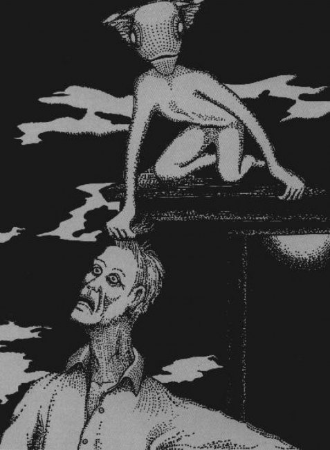 Напуганные и остолбеневшие мужчины очнулись после того, как услышали крик ребенка из детской. Они бросились на помощь и увидели, что в окно в детской заглядывало практически такое же самое существо. Мужчины опять открыли огонь, но после не обнаружили тела, поэтому поняли, что человеческое оружие пришельцев не повреждает.