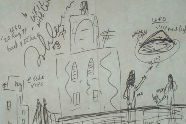 Доказательства веры Леннона в пришельцев находили и раньше. Например, в 1984 году он выпустил песню «Никто не говорил мне», в которой есть следующая строчка: «Над Нью-Йорком завис НЛО, но я не особенно удивлен». А в прошлом году британский уфолог Расс Келлетт купил у частного коллекционера редкий набросок на бумаге, выполненный рукой наиболее известного и почитаемого «битла». На этом схематическом рисунке можно лицезреть несколько домов, Бруклинский мост, самого музыканта, некую женщину возле него, а также «летающую тарелку». «Белые огни, красные огни», – гласят подписи певца к различным элементам инопланетного воздушного судна. Это, к слову, очень распространенное описание НЛО – такие объекты встречают почти во всех уголках Земли.