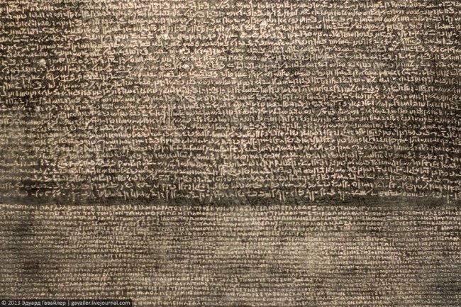 Розеттский камень — плита, найденная в конце XVIII века в Египте возле города Розетта. На нем выбит идентичный по смыслу текст на трех языках: двух древнеегипетских и греческом. Именно он послужил отправной точкой для расшифровки египетских иероглифов.