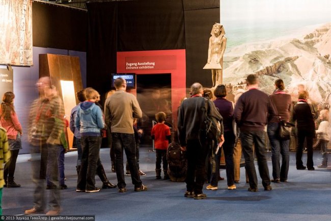 Выставка «Тутанхамон. Его гробница и сокровища» (нем. Tutanchamun Sein Grab und die Schatze, официальный сайт: www.tut-ausstellung.com) расположилась на пространстве в 4 тысячи квадратных метров в Arena Berlin (Eichenstrasse 4 12435 Berlin). Здесь же в прошлом году проходила международная конвенция татуировщиков.