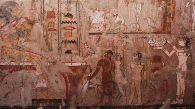 Внутри необычное захоронение выложено глиняными кирпичами с изображением самой жрицы. Пасторальные сцены охоты и рыбалки перемежаются военными картинами и зарисовками из придворной жизни.