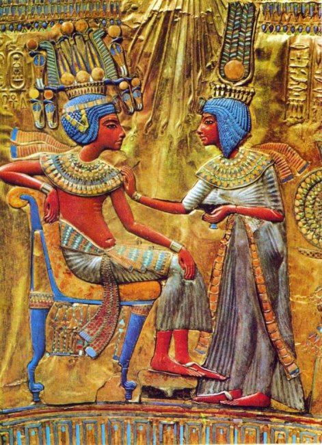 Осирис женился на своей сестре Исиде, позже даже члены королевской семьи поступали так, ведь они считали себя божественными. Клеопатра, любовница Цезаря и Марка Антония, вышла замуж за своих братьев, Птолемея XIII и Птолемея XIV. Некоторые фараоны даже женились на своих дочерях, хотя, возможно, это был почетный брак, чтобы поднять статус принцессы. В отличие от обычных египтян, которым это было запрещено, фараоны часто брали нескольких жен, что позволяло им создавать или укреплять внутренние и международные альянсы. Тем не менее одна из жен, часто сестра или сводная сестра, доминировала над другими и носила титул Великой королевской жены. Тутанхамон, который правил с 1332 по 1323 г. до нашей эры и страдал от многочисленных уродств, был сыном Эхнатона и одной из сестер Эхнатона. Он взял в жены свою сводную сестру Анхесенамону, дочь Эхнатона и его Великой королевской жены Нефертити. Прежде чем выйти замуж за Тутанхамона, Анхесенамона была замужем за своим отцом. У Тутанхамона и Анхесенамоны было две дочери, но обе родились мертвыми.