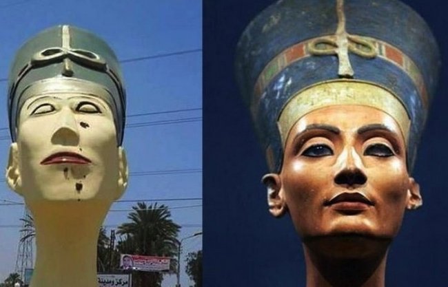 В итоге получился скандал, поскольку реплика была просто отвратительной. Она немедленно стала предметом повсеместных насмешек в Египте, где местные жители сравнивали ее с монстром Франкенштейна. Резонанс был таким сильным, что статую вскоре снесли, а в январе 2016 года установили новую, менее гротескную реплику знаменитого бюста.