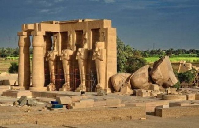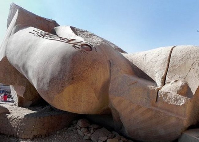 Но даже величие колоссов меркнет в сравнении с обломками гигантской статуи, покоящейся во дворе Рамессеума — поминального храма Рамсеса II. Сделанная из цельного куска розового гранита скульптура достигала высоты 19 метров и весила около 1000 тонн! Вес пьедестала, на котором некогда стояло изваяние, составлял около 750 тонн. Чудовищные размеры статуи и высочайшее качество исполнения абсолютно не вписываются в известные нам технологические возможности Египта периода Нового царства (1550-1070 гг. до н. э.), которым датирует скульптуру современная наука.