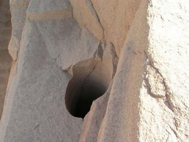 Храм Сахура. Отверстие с равномерно повторяющимися круговыми рисками