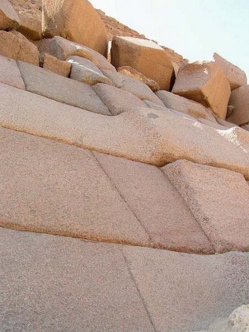 Пирамида Менкаура. Стена, выровненая неизвестным инструментом. Процесс предположительно не завершён