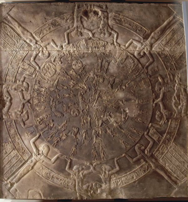 Речь идет о знаменитом потолке в Дендерском храме, который так поразил французов, что они целиком отправили его в Париж. Сейчас он хранится в Лувре, а в храме воссоздана точная копия. На этом потолке изображен зодиакальный круг удивительной красоты.