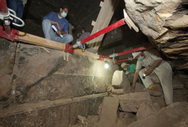 Кадры из док. фильма, где Хавасс залазит в пирамиду Сехемхета и смотрит, куда же делась мумия царя))