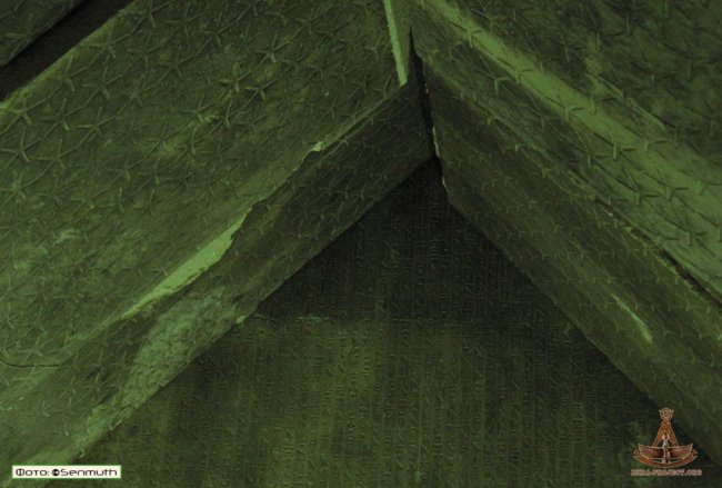 Магические формулы, указания чего делать на том свете и т.п. Т.е. по сути, это первый свод Книги Мертвых на стенах усыпальниц. Потолок из множества звезд.