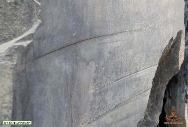 От саркофага остались только жалкие фрагменты. Следы сложные, но как мы видим (при ближ. рассмотрении) на них имеются следы ручной обработки с абразивом. В целом, крышка не очень вписывается в ряд саркофагов Древнего Царства.