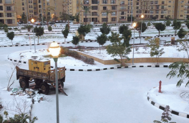 Уникальное фото, Сфинкс покрытый снегом. В Египте выпал снег, впервые за 122 года, он покрыл улицы египетской столицы