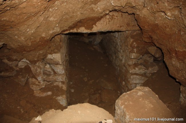 Ниже, первое помещение после коридора, возможно, это и есть погребальная камера. Как правило, стандартная лидийская гробница имела один коридор и одну комнату для погребения, в большинстве случаев, небольшую — примерно 3 на 2,5 метра. Но могла быть еще и «прихожая», т.е. две камеры на одной линии, или целый лабиринт из коридоров и камер, как в крупных царских курганах, типа Алиатта.