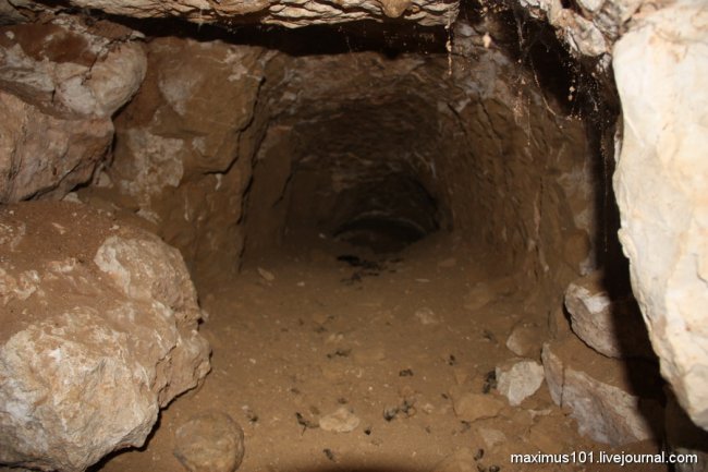 Но, здесь мы наблюдаем непонятно что — помещение внутри бесформенно из-за земли, заполнившей камеру, и продолбленных в стенах нор. Можно не сомневаться, что лазы пробили грабители могил, скорее всего, именно из-за их деятельности и рухнули перекрытия. Такие норы пробиты во все стороны, внутри камеры абсолютный ад — ползает тьма насекомых и все висит на соплях, земляной потолок может в любой момент обвалиться, поэтому я не стал искушать судьбу и выбрался наружу.