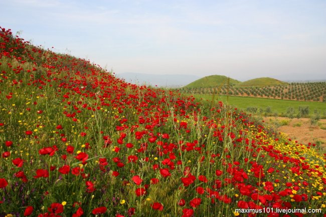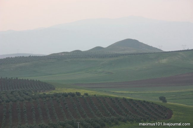 Степные маки и пара крупных курганов к востоку, они оказались хорошо огорожены колючей проволокой вместе с посадками оливковых деревьев.