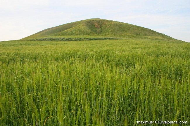 Курган, что » в маках» относительно небольшой — диаметр 74 метра, высота порядка 10 метров.