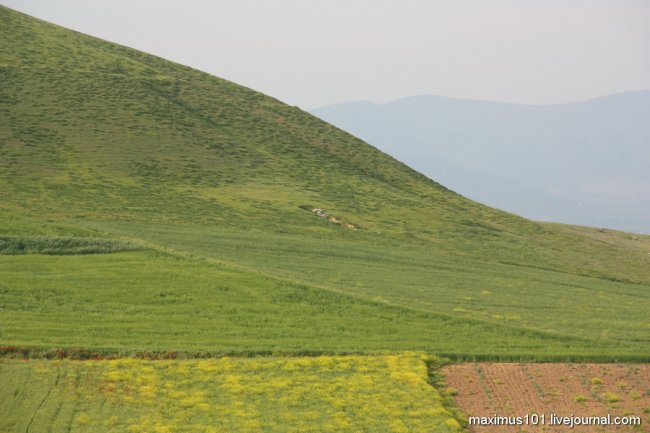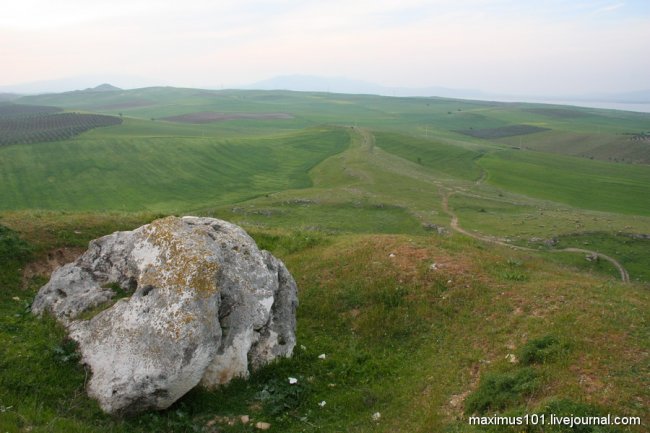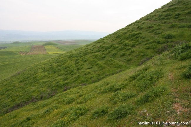 У меня машины не было, поэтому я просто пошел по полю. Вся территория Бинтепе распахана под различные сельхозкультуры, поэтому передвигаться пешком здесь также тяжело, особую проблему создают ограждения из колючей проволоки, которые могут тянуться между полями на многие сотни метров. У меня создалось впечатление, что таким способом турки стараются осложнить жизнь охотникам за сокровищами, коих в здешних местах бывает много, курганы до сих пор постоянно грабятся и уничтожаются.
