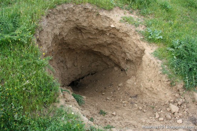 Кое-где на склоне мне попадались вот такие дырки в земле, видимо это чьи-то норы, но иногда в голову приходила мысль и о вентиляционных шахтах.