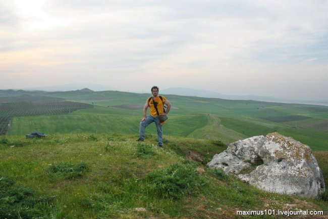 И вот вершина взята, самый высокий курган в мире покорен. Кстати, я совсем не удивлюсь, если окажусь первым русским, поднявшимся на этот холм, так как соотечественники не очень жалуют подобные места. Справа от меня основание одного из лидийских монументов, он имел диаметр около 3 метров. Какая у этих колон была высота неизвестно, но думаю могло быть и метров 15, если судить по их диаметру и величине воронок в земле.