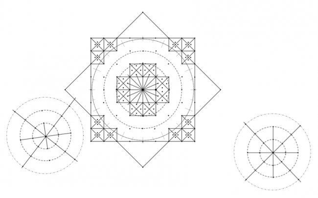 В геометрических построениях для строителей были важными именно «узловые точки», отмеченные камнями. А соединяющие их линии и круги, которые объединяли группы точек, имели скорее второстепенное значение, и за безупречностью исполнения их особенно не следили. Также наблюдается «иерархия» контуров – некоторые линии или фигуры сделаны еле заметными, а некоторые выделялись крупными камнями или подсыпанием мелких камней.