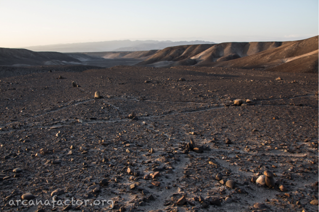 Возможно предположение – что эти фигуры строились ради развлечения или для эксперимента. Но аргумент против этого опять тот же – недоступность для визуализации. Для этих целей скорее была бы выбрана стандартная технология изготовления геоглифов – освобождение практически белой подпочвы от камней и потемневшего на солнце верхнего слоя грунта. Геоглиф в этом случае получается ярким, начинает как бы светиться и становится видимым даже со спутника. И вряд ли бы строители в этом случае усложняли себе жизнь, сооружая несколько геоглифов в разных частях пустыни и на сложном рельефе.