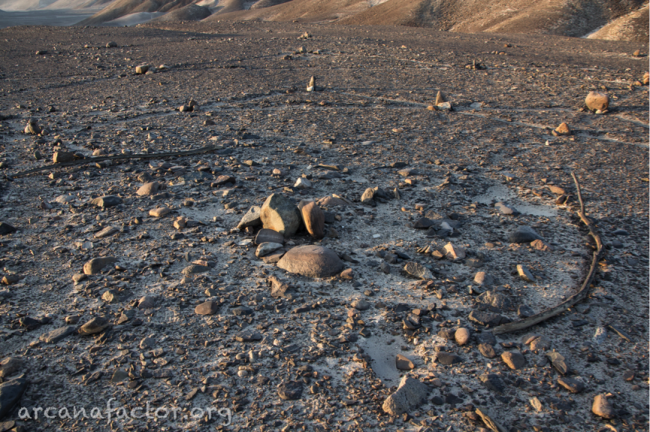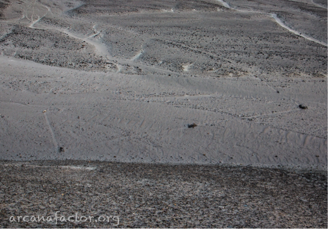 Если отойти в сторону нематериального, то можно представить, что это следы секретных ритуалов какого-нибудь тайного общества «вольный геодезист», или насканский аналог широко распространенных «кругов на полях»… Здесь полет фантазии не ограничен ничем…