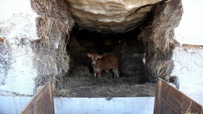 Затем в доме поселился первый жилец — Паулина, которая постепенно выела сено, освободив от него внутреннее пространство (Паулина, кстати, провела там около года и покинула свой временный дом уже 300 килограммовой коровой).