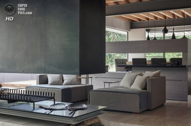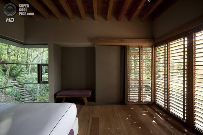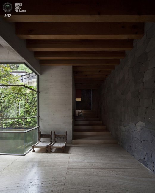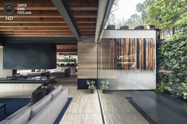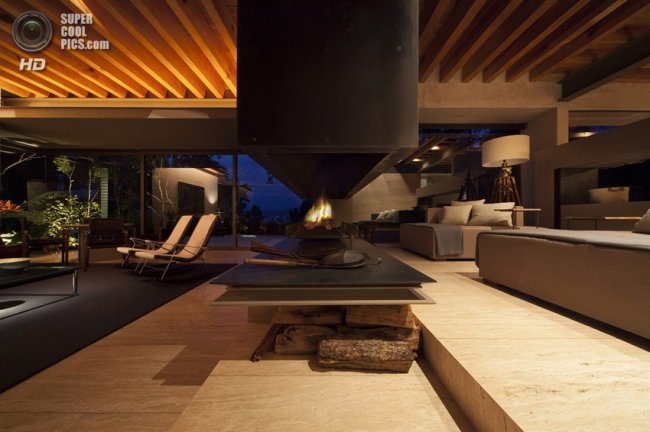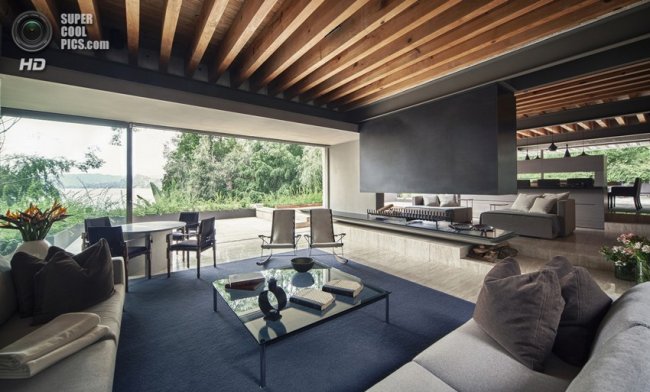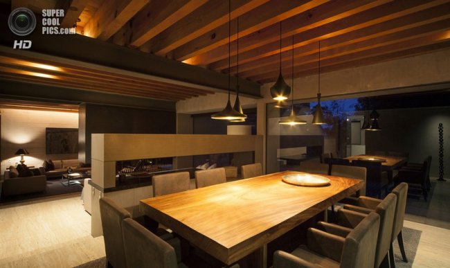 На берегу озера Мигель-Алеман в центральной Мексике, в двух часах езды от Мехико, расположен «магический городок» Валье-де-Браво. Это популярный туристический объект с тропическим климатом, и именно здесь был возведён особняк Maza House по проекту архитектурной студии CHK arquitectura. Стоит отметить, что он проектировался так, как будто является неотъемлемой частью пейзажа. Растительность здесь буквально везде — во дворе, на крыше. Но вот в самом доме её нет. Интерьер выдержан в тёплом древесном ключе; он может меняться в зависимости от освещения. А ещё из окон просматривается «швейцарский вид» — тихая гладь озера и горы.