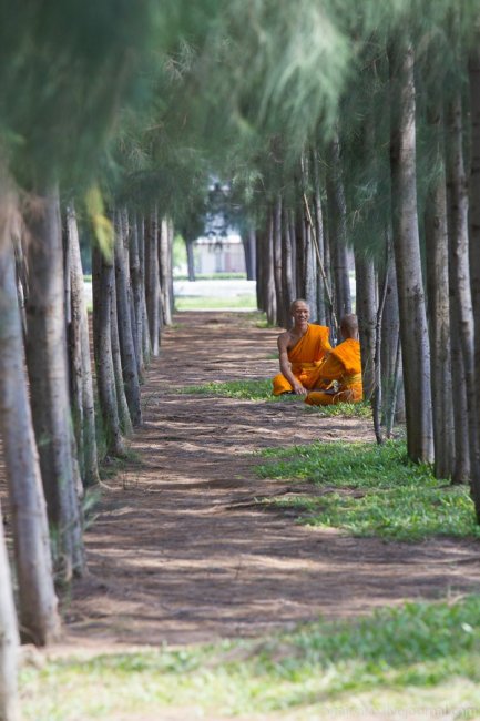 В основном — монахи. Они сидели на полу и на стульях большими группами. Примерно, в этом комплексе их было пара тысяч человек. Звучала какая-то гипнотическая музыка, странный голос что-то говорил на тайском языке и по сотням телеэкранов показывали, как тысячи людей-тайцев отдают пожертвования монахам.