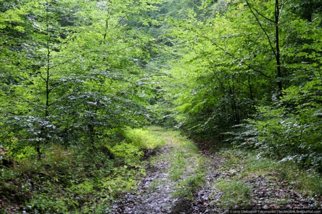 Грунтовая дорога идет все время в горку и через километр упирается в развилку: один путь идет налево — второй направо, и небольшая заросшая тропинка идет прямо. Мы идем направо, так как этот путь ближе к заветной точке на экране навигатора. Вскоре и с этой дорожки приходится свернуть и идти прямиком через лес, благо он не сильно заросший кустами, так что особого дискомфорта от передвижения по пересеченной местности нет, напрягает лишь постоянный перепад высот, так как за плечами десяток килограмм амуниции и каждый раз подниматься в горку немного утомляет. В итоге мы доходим до точки, отмеченной в навигаторе и… ничего. Вокруг все тот же самый лес и не малейшего признака заветного бункера.