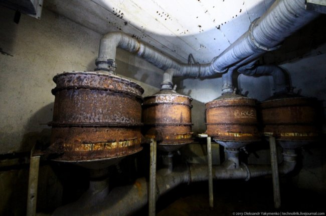 Гораздо лучше сохранилось помещение с резервуарами для воды. Вообще резервуары для воды — то, что сохраняется в каждом заброшенном объекте, независимо от степени его развандаленности и разворованности. Причина проста — украсть их невозможно.