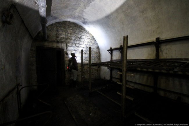 Входной блок мы осмотрели полностью, спускаемся на нижний уровень в систему казарменных помещений.