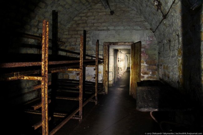 И снова казармы с сохранившимися кроватями и столами. Удивила кирпичная кладка убежища. Многие объекты линии были либо бетонированными, либо кладка была заштукатурена снаружи. Здесь же просто стены оставили такими, какие они есть. Возможно из-за традиционной нехватки средств во время строительства.