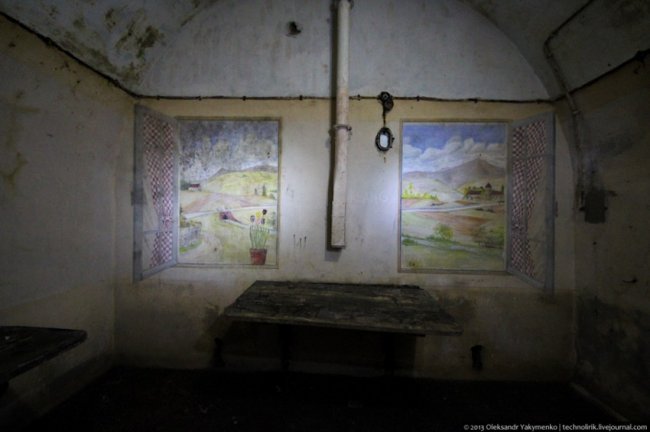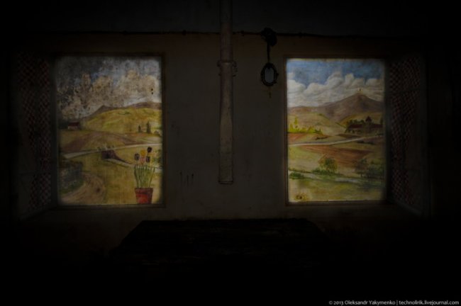 И эта тоска нашла свое отражение в рисунке неизвестного солдата, который, с помощью доступных художественных средств, попытался создать в этой крохотной комнатке иллюзию простора родных мест.