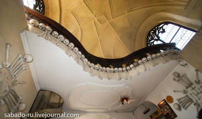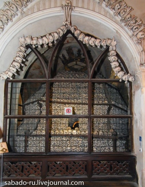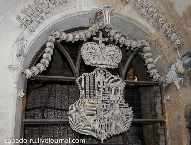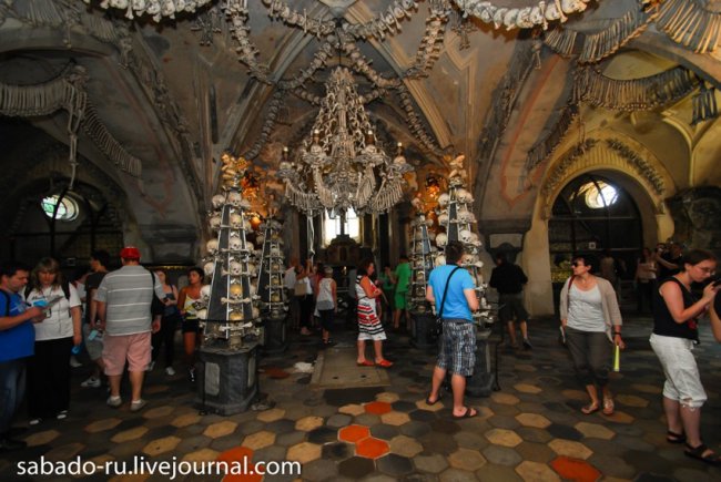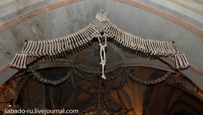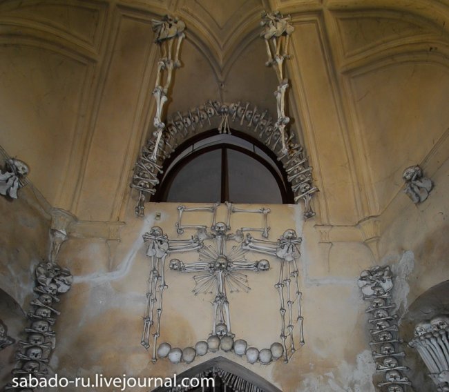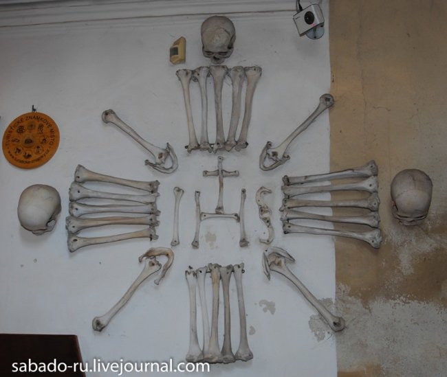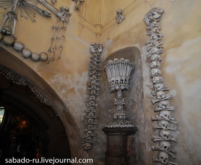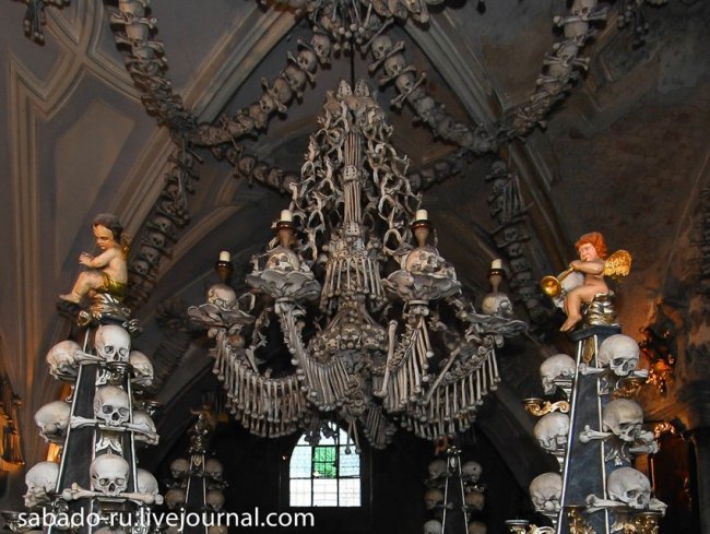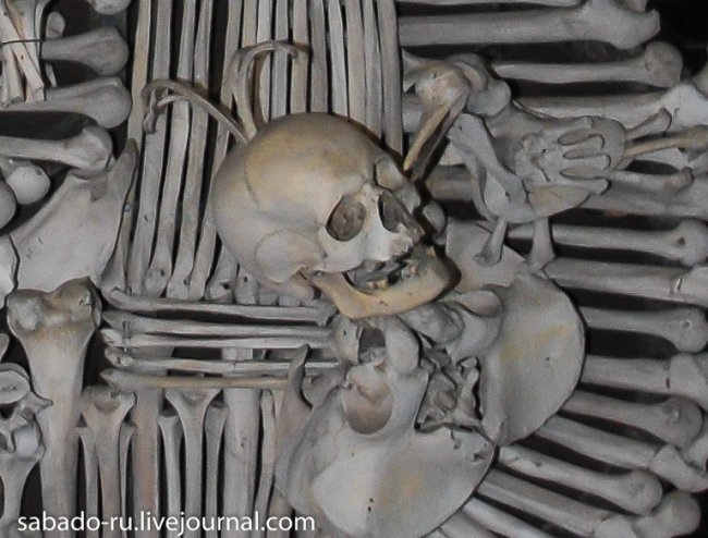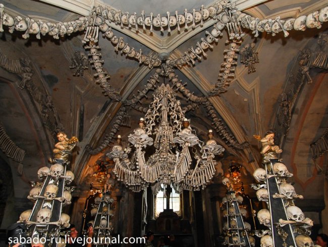 В 60 километрах от Праги в пригороде Кутна Горы есть церковь на украшение которой ушло сорок тысяч человеческих скелетов