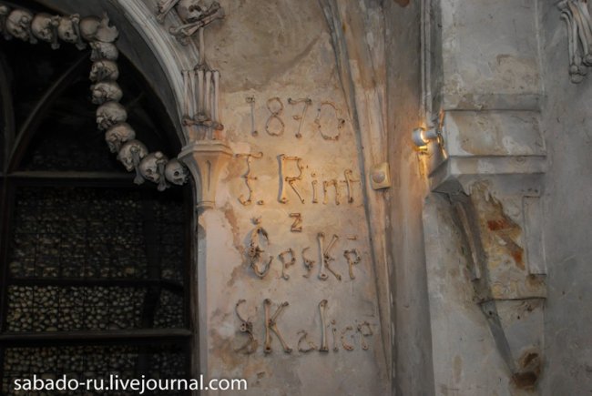 Не забыл и себя увековечить чертов Франтишек, выложив справа от входа свои инициалы, выполненные также из человеческих костей.