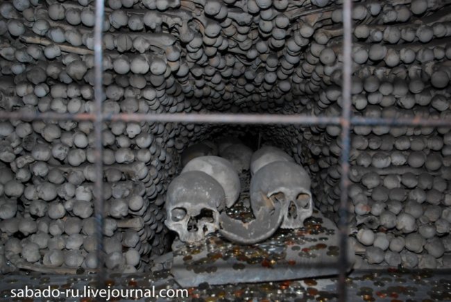 История этого дьявольского творения такова: В средние века здесь был монастырь, на его земле находилось кладбище. Средневековые войны и эпидемии, переполняли кладбище. В те времена практиковались вторичные захоронения. Старые захоронения раскапывали, останки складывали в часовни, а на их месте хоронили умерших.