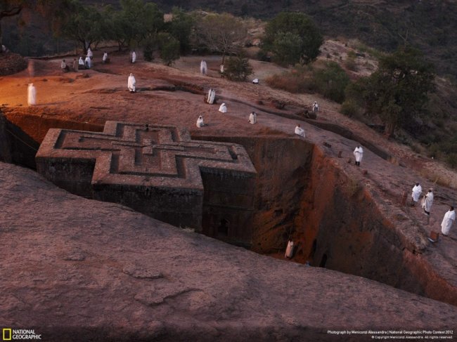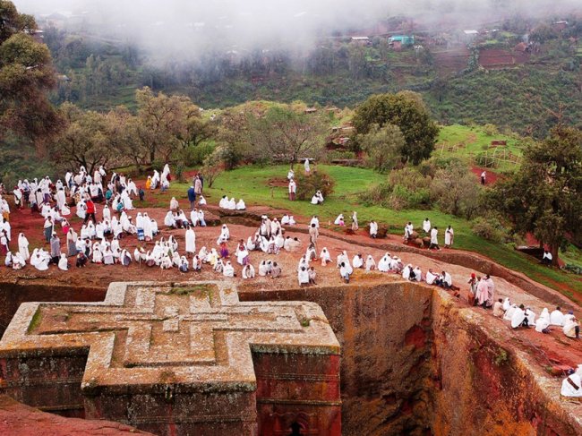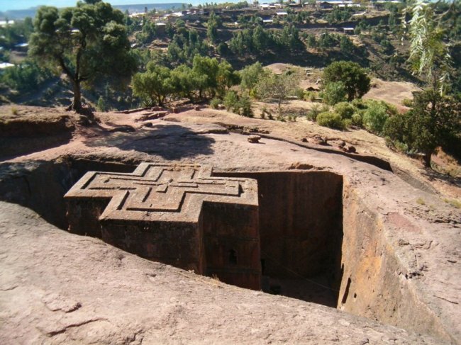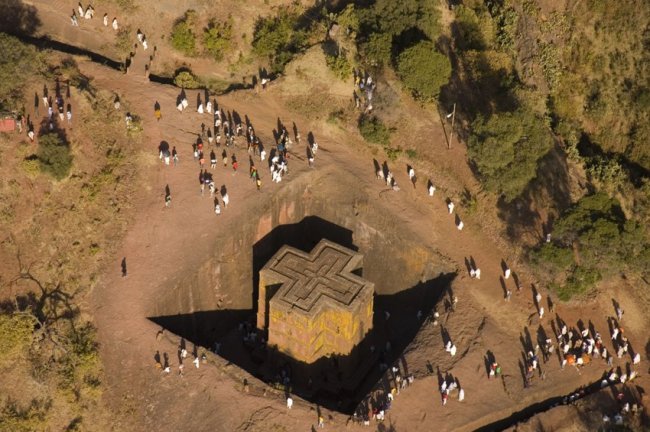 А потрясение и закаленные морскими бурями португальцы, и современные туристы испытывают потому, что 13 церквей — все без исключения вырублены в скалах, причем церковь Бете Медхане Алеем считается самой крупной подобной церковью в мире. И почти все из тринадцать построены во время правления Лалибелы, в 12-13 вв. Впрочем, датируются храмы с очень большим разбросом: есть мнение, что за правление одного короля все их просто не успели бы вырубить (а значит, какие-то из храмов моложе – 14 века), есть и мнение, что по крайней мере три церкви были вырублены в скалах на полтысячелетия раньше и первоначально служили крепостями или дворцами в королевстве аксумитов. Писатель Грэхем Хэнкок представил и собственный взгляд на вещи – их-де построили крестоносцы – но ни один ученый его не поддержал.