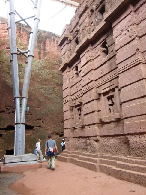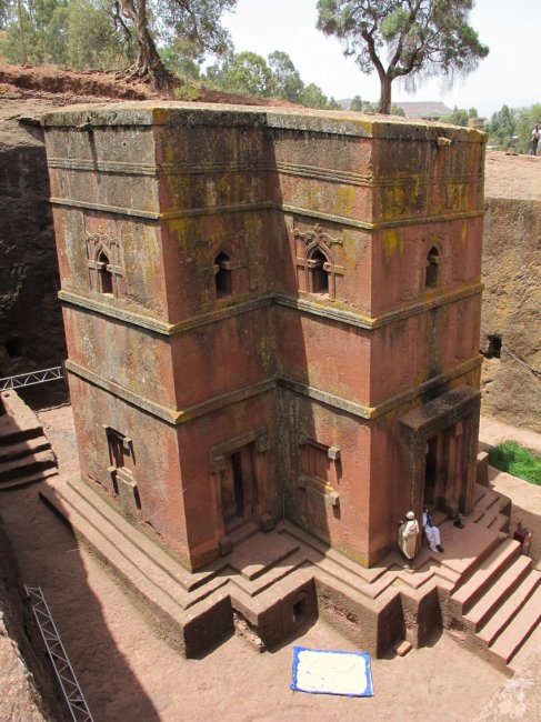 Храмовый комплекс Лалибелы — это одиннадцать искусно вырубленных в скале церквей. Украшенная колоннами, самая большая из них — это Бете Медане Алем, или Храм Спасителя Мира. Бета Медане Алем — самый большой в мире храм, высеченный целиком из единого скального массива. И вся его наружная часть и все внутренние помещения, колонны, залы и потолки — это то, что осталось, когда от гигантской глыбы мастера отсекли всё лишнее. Исключение составляют несколько колонн, состоящие из отдельных блоков и делающие его похожим на классические греческие храмы. Работа эфиопских каменотёсов вызывает восхищение, особенно, если учитывать, что у них не было права на ошибку, ведь прикрепить обратно неправильно вырубленный кусок туфа было бы невозможно. К тому же им приходилось учитывать структуру камня, чтобы не дать конструкции пойти трещинами в самых неожиданных местах. Для этого был нужен точный расчет и чёткое видение каждым из многочисленных каменотёсов всего строения в целом, — еще до начала всех работ.