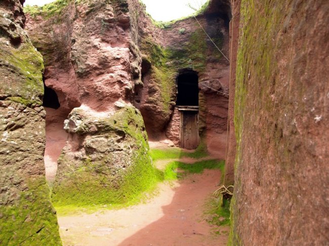 По узким тоннелям, прорубленным в породе, от одной церкви к другой можно перейти, не поднимаясь на поверхность. Весь комплекс «спрятавшихся»храмов-монолитов трудно заметить даже с малого расстояния. Достаточно было не подпускать чужаков слишком близко — и святыни не подвергались лишней угрозе. Храмы нередко становились надежным убежищем — система подземных ходов была очень разветвленной. Служители говорят, что сейчас многие из них замурованы или закрыты досками и коврами, а о некоторых не знают даже самые любознательные и сведущие смотрители. Свидетели множества событий, происшествий и тайн, храмы Лалибелы притягательны и неповторимы. Внутри на уровне человеческого роста их стены и колонны отполированы тысячами рук и губ верующих, постоянно прибывающих сюда, чтобы поклониться почитаемым святыням Лалибелы. В храм Святого Георгия, стоящий в глубоком каменном колодце, лучи света попадают лишь в полдень, когда солнце оказывается в зените. В остальное время на него падают густые тени окружающих стен, превращая его съёмку в непростую задачу.