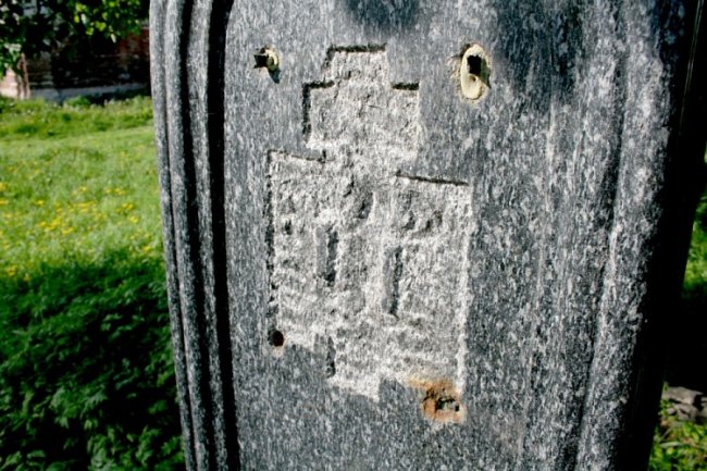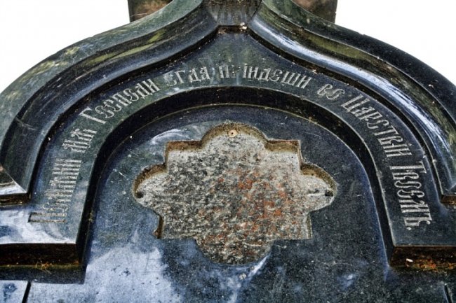 Ярославская область. Кладбище середины 19 века. Грубо обработанная гранитная плита покрыта слоем высококачественной геополимерной штукатуркой.