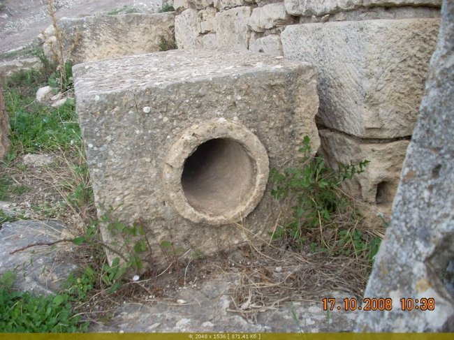 Дугга, Тунис. Очевидно керамическая труба была залита бетоном, и вот загадка для потомков: — где тот сверхмощный сверлильный станок, со сверлом 30 и фрезой 40см. Не надо всё так усложнять. Железный век это эра в которой сейчас живём мы, а не то, о чём в учебниках пишут. А каменный век, это вовсе не время неандертальцев с каменными топорами и скребками. Каменный век закончился только в 18 веке, в момент, когда на смену массовому применению камня пришли на замену металлические инструменты и стройматериалы.