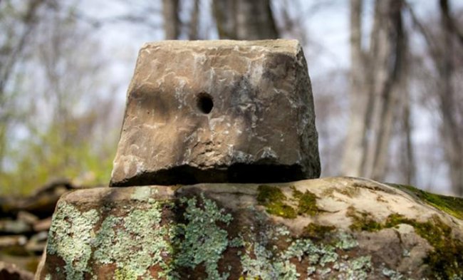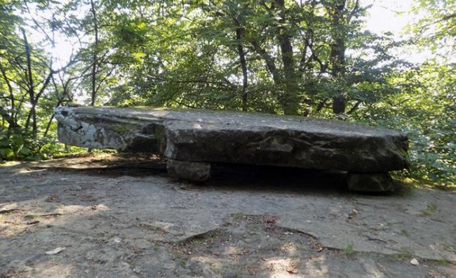 Продвигаясь дальше, можно увидеть тот самый «Камень желаний», а также некое подобие дольмена, только меньшего размера, на котором находится камень с круглым отверстием в центре. Вероятно, у него было тоже некое культовое предназначение. Тропа ведет к обрыву, которым заканчивается территория, прозванная «Шпилем».