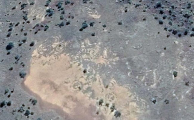 «Виртуальные археологи» на картах Google Earth обнаружили в австралийской пустыне участок с огромными спиральными рисунками на земле, так называемыми геоглифами.