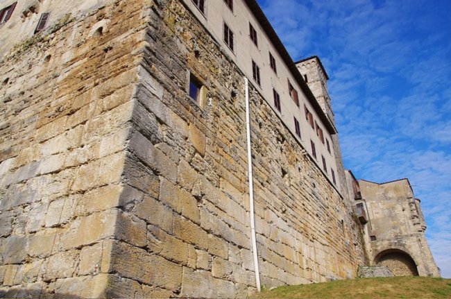 На примере ворот Порто Сангвинария историю городка можно проследить, словно на разрезе геологических пластов. Верхняя часть состоит в основном из бутового камня, который широко применялся в Средние века, арочные своды из тесаного камня и дверные перекрытия относятся к римской эпохе (I в. до н.э.), а нижняя часть, колоссальная кладка фундаментных стен, восходит ко временам герников.