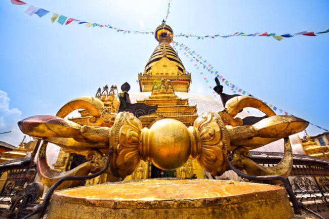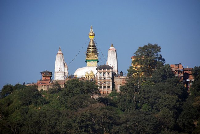 Поднявшись на холм Сваямбунатх, начинаешь понимать достоверность древнего предания, утверждающего, что только это место некогда возвышалось над водами озера. Во всей долине, насколько хватает глаз, нет более ни единой возвышенности.